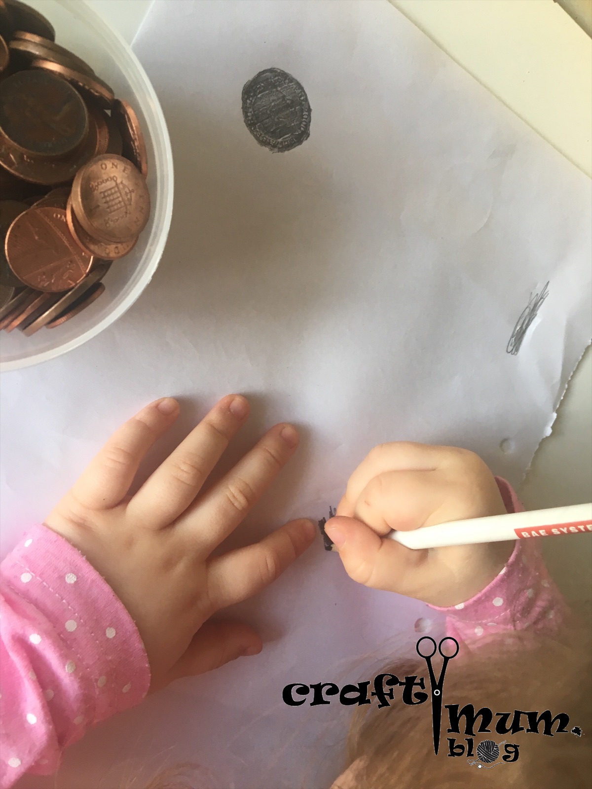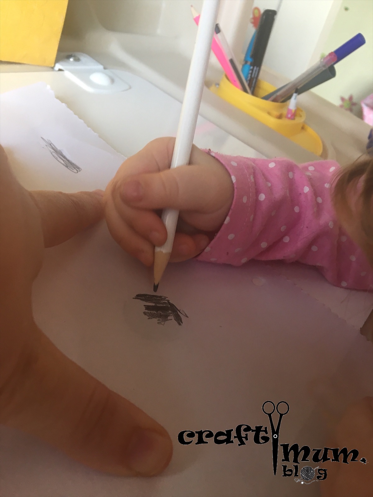 I spent ages doing this as a child si I had to try it with my little one. She’ll be better at it when she will lear how to control the pressure she puts when drawing, but she liked it anyway.