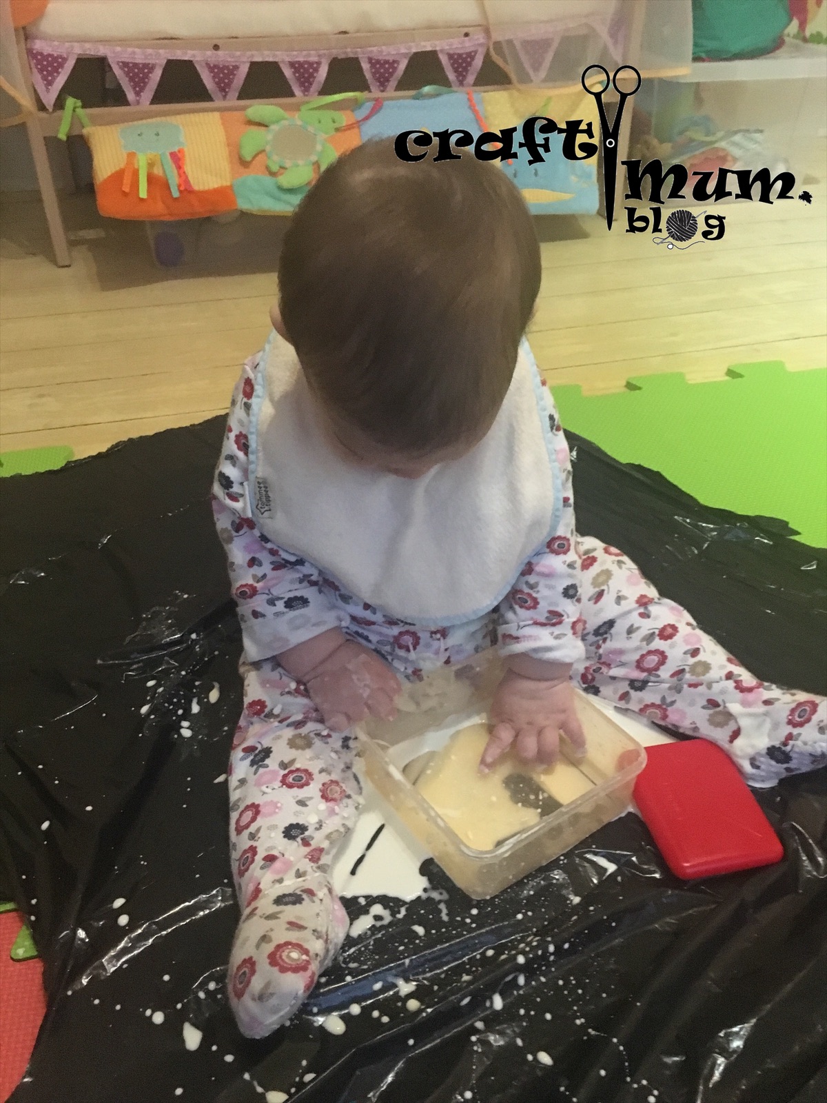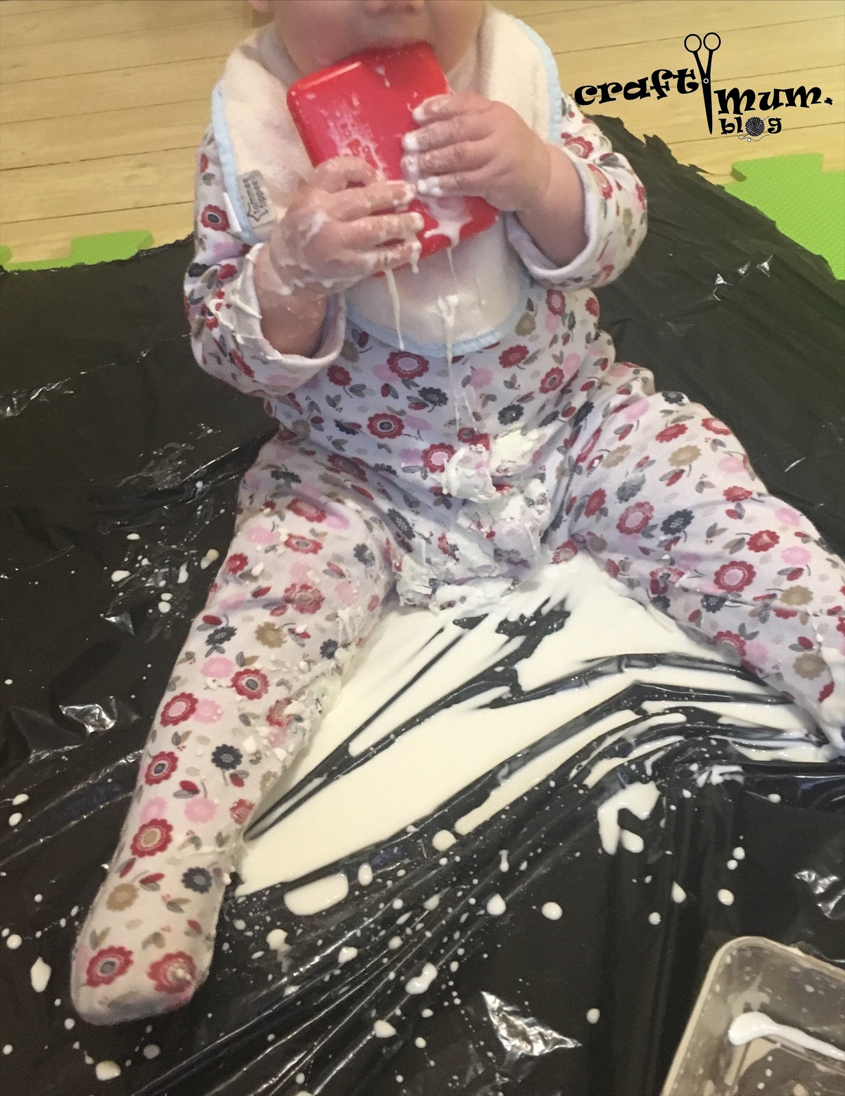 Great sensory play idea. Water and cornflour. It’s sticky and goes hard on the outside. Really interesting texture and safe to be tasted.