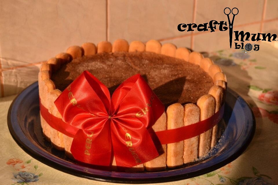 I am a big fan of cheesecakes and like to change the clasic digestive biscuits base. For this one I used one of my favourite recipes (a fluffy version) and replaced the base with sponge fingers. Also added some inside and lined up the exterior with them. I used a ribbon and a bow to finish off.