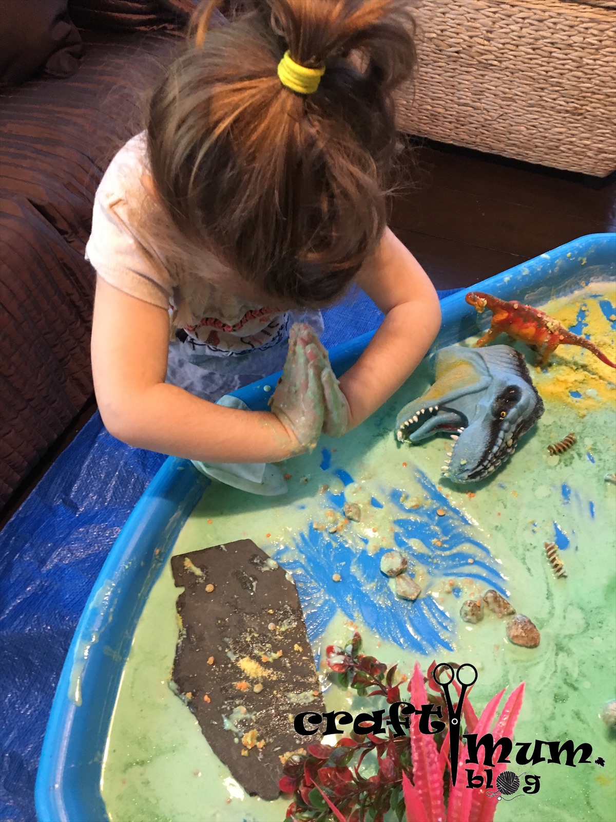 - Water, flour and food colouring for the goo (or liquid watercolours);