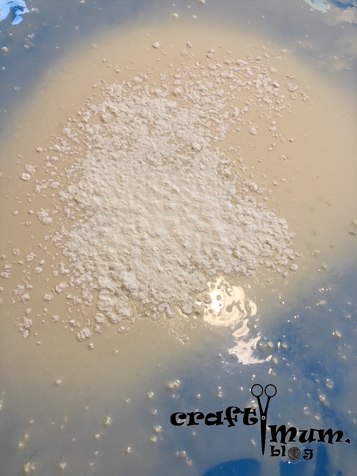 To make the goo just mix water, flour and colours to get a pancake batter consistency.