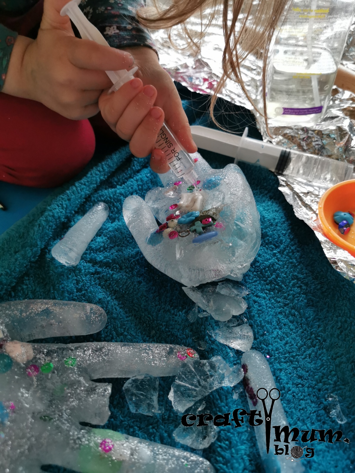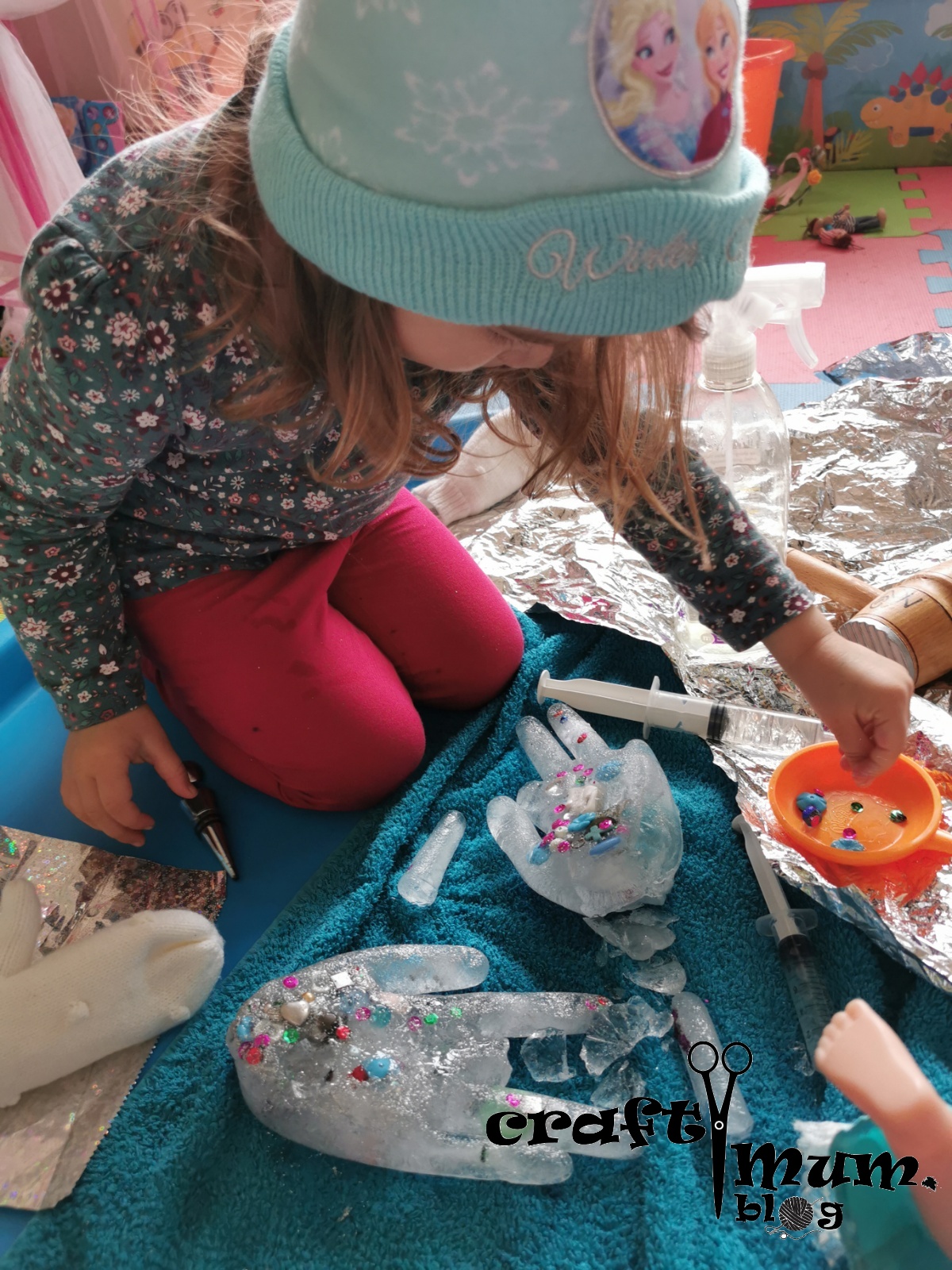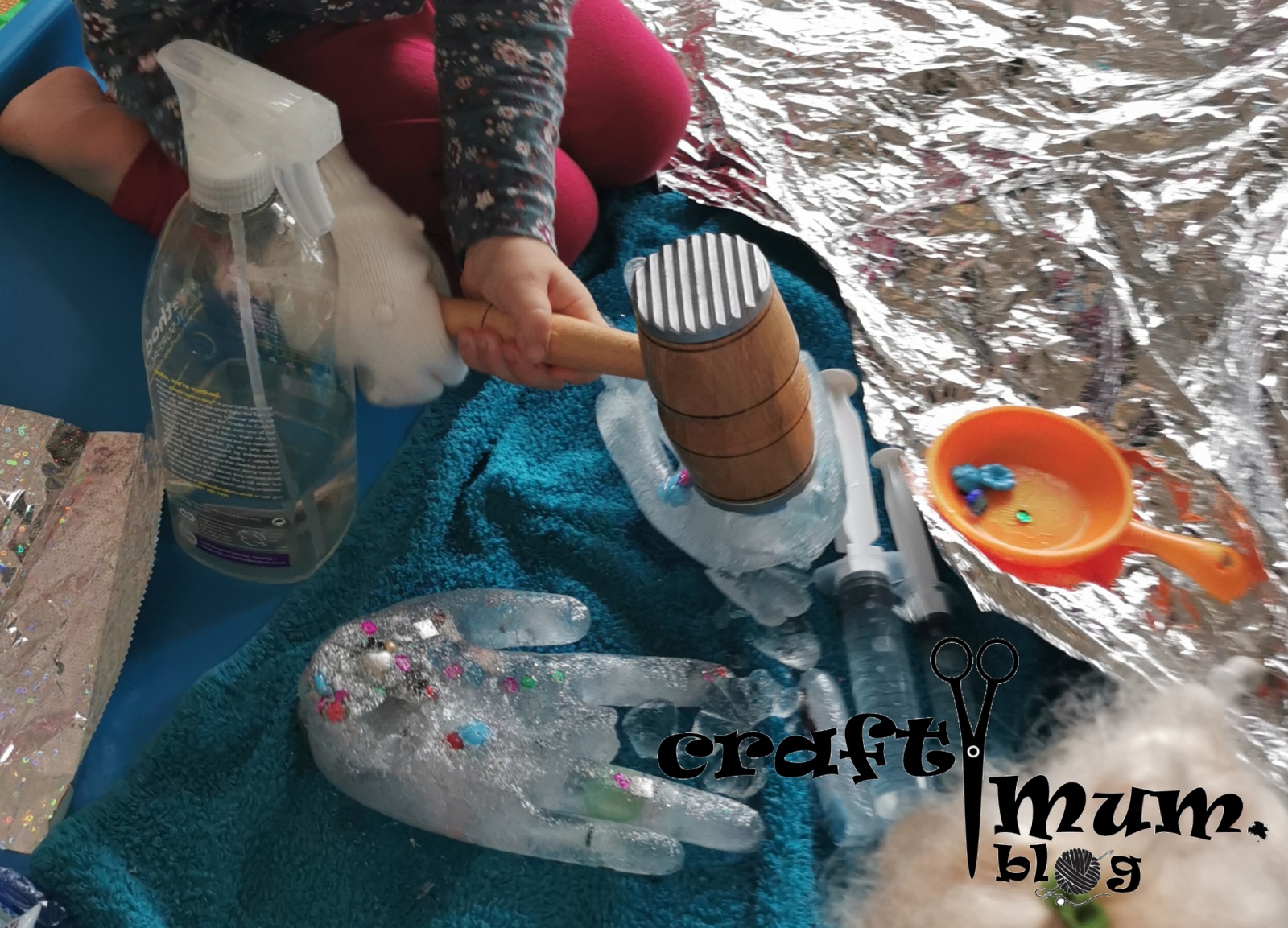 Great play idea for a hot or cold day or during . This Frozen themed activity is refreshing and very entertaining for any Frozen fans. We put songs in the background and my little one wanted to wear her Elsa & Ana hat and gloves.