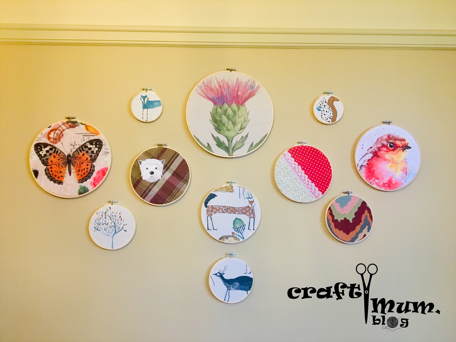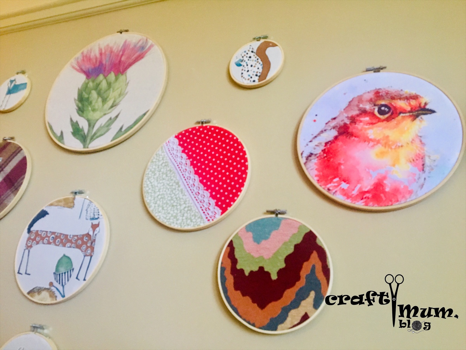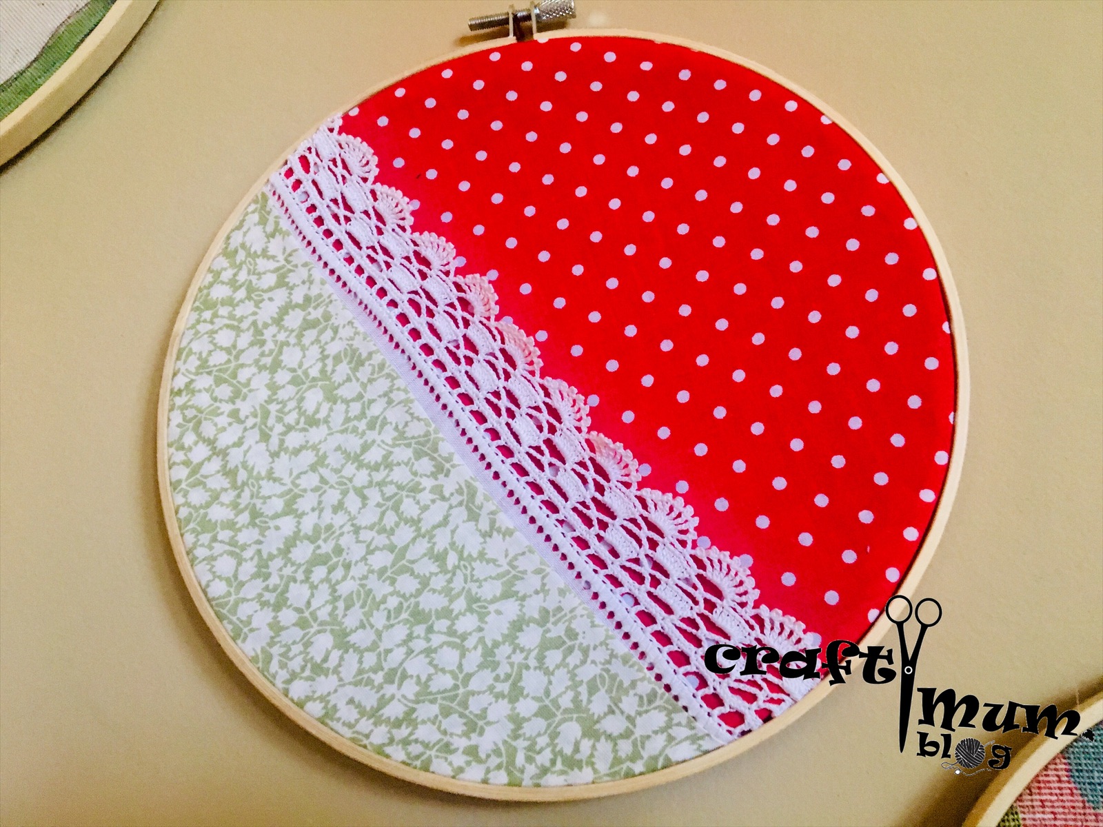 Here is an easy way to frame fabric for any wall art you might have in mind. Use a embroidery hoop.