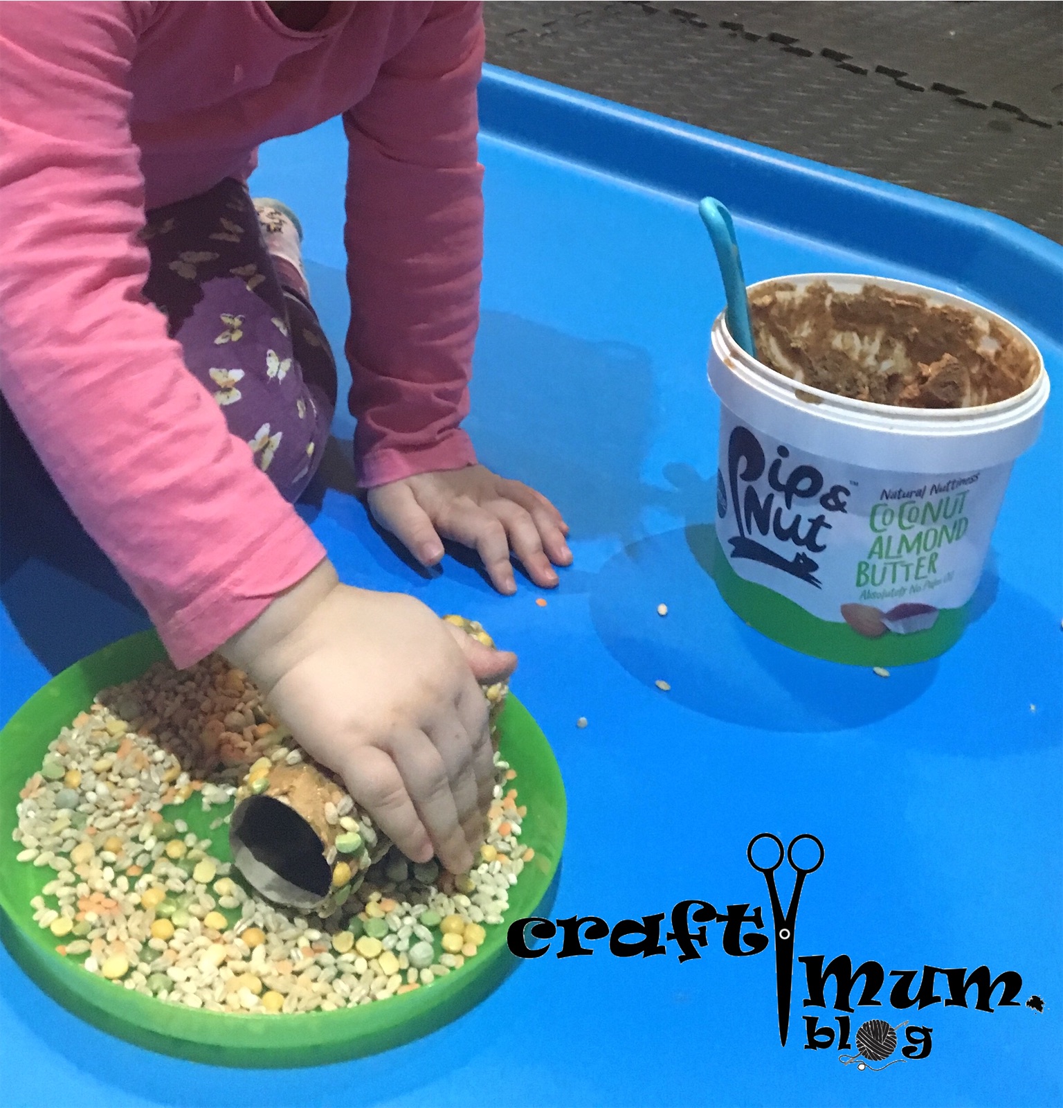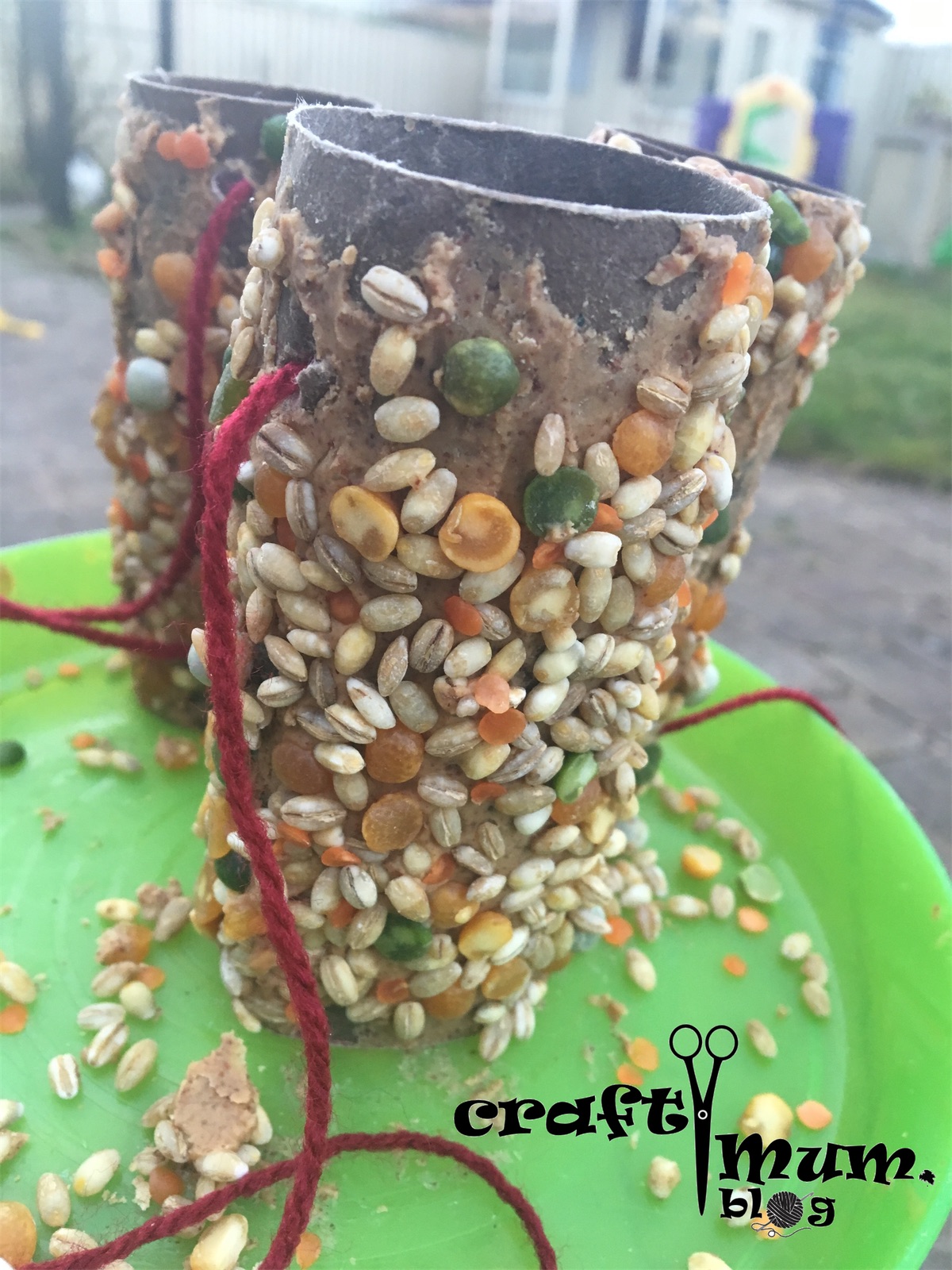 Just spread some peanut butter on the toilet roll to get the seeds to stick. Use a bit of string to put the feeder in a tree.