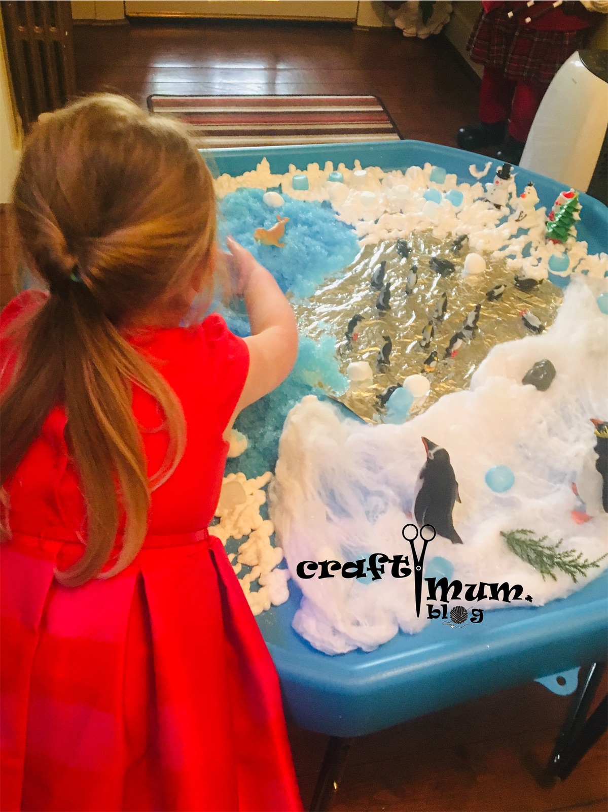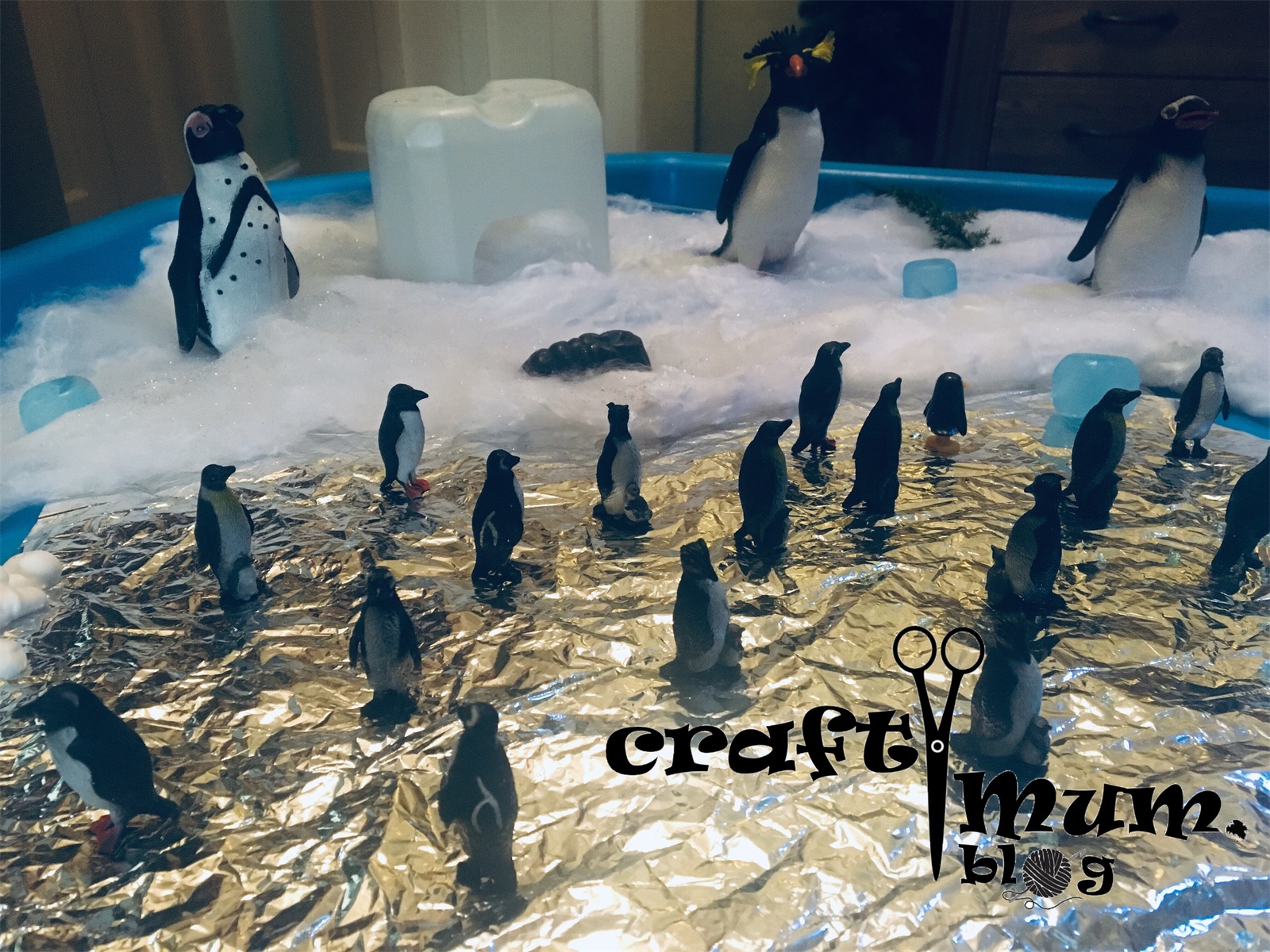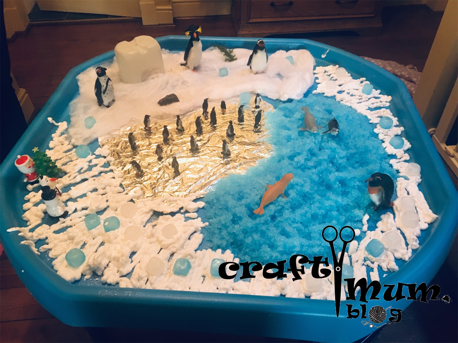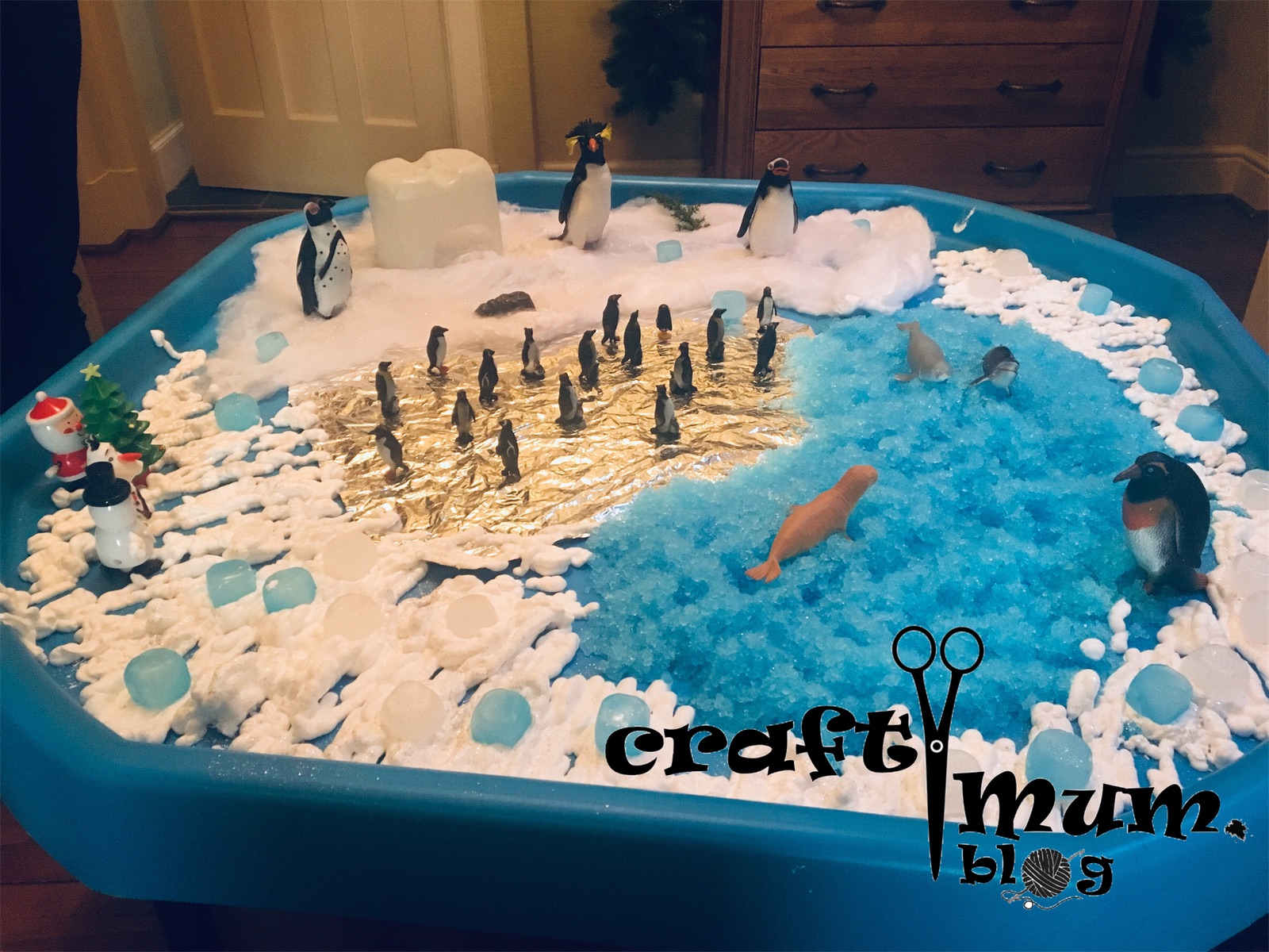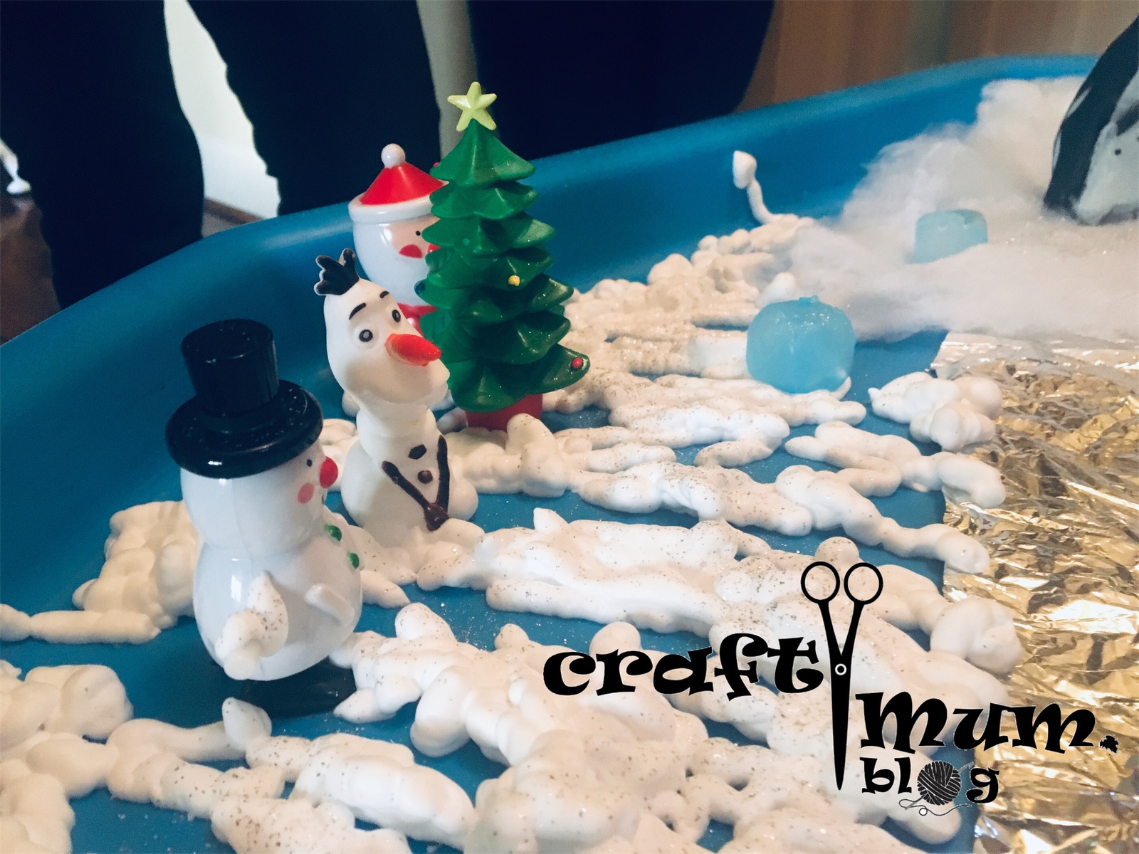 I have a few snow tuff spot articles presenting different ways to make pretend snow. This uses shaving cream and jelly baff.