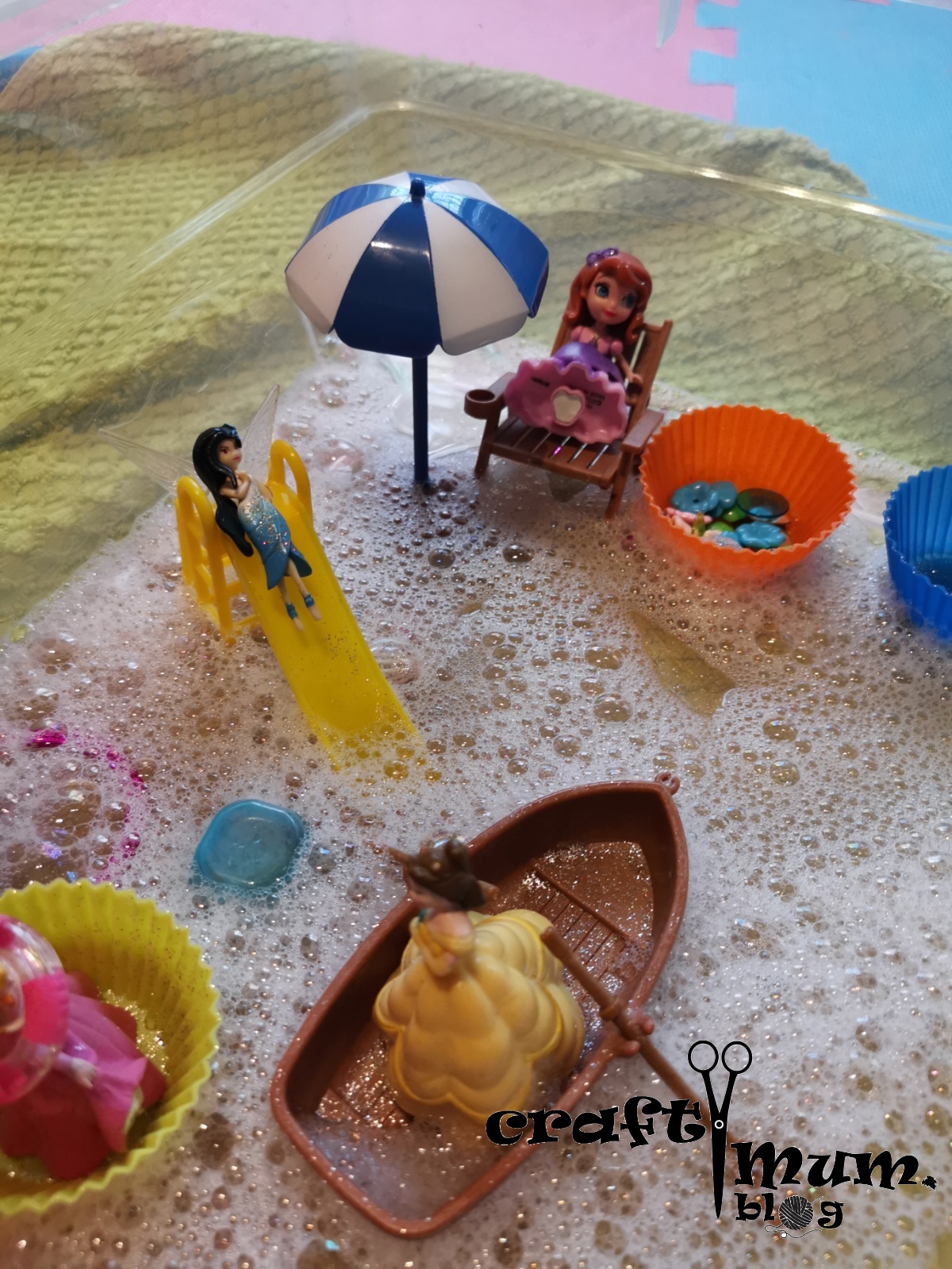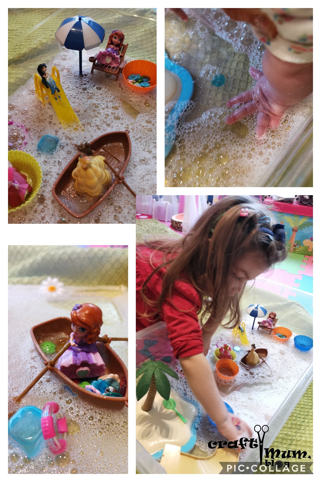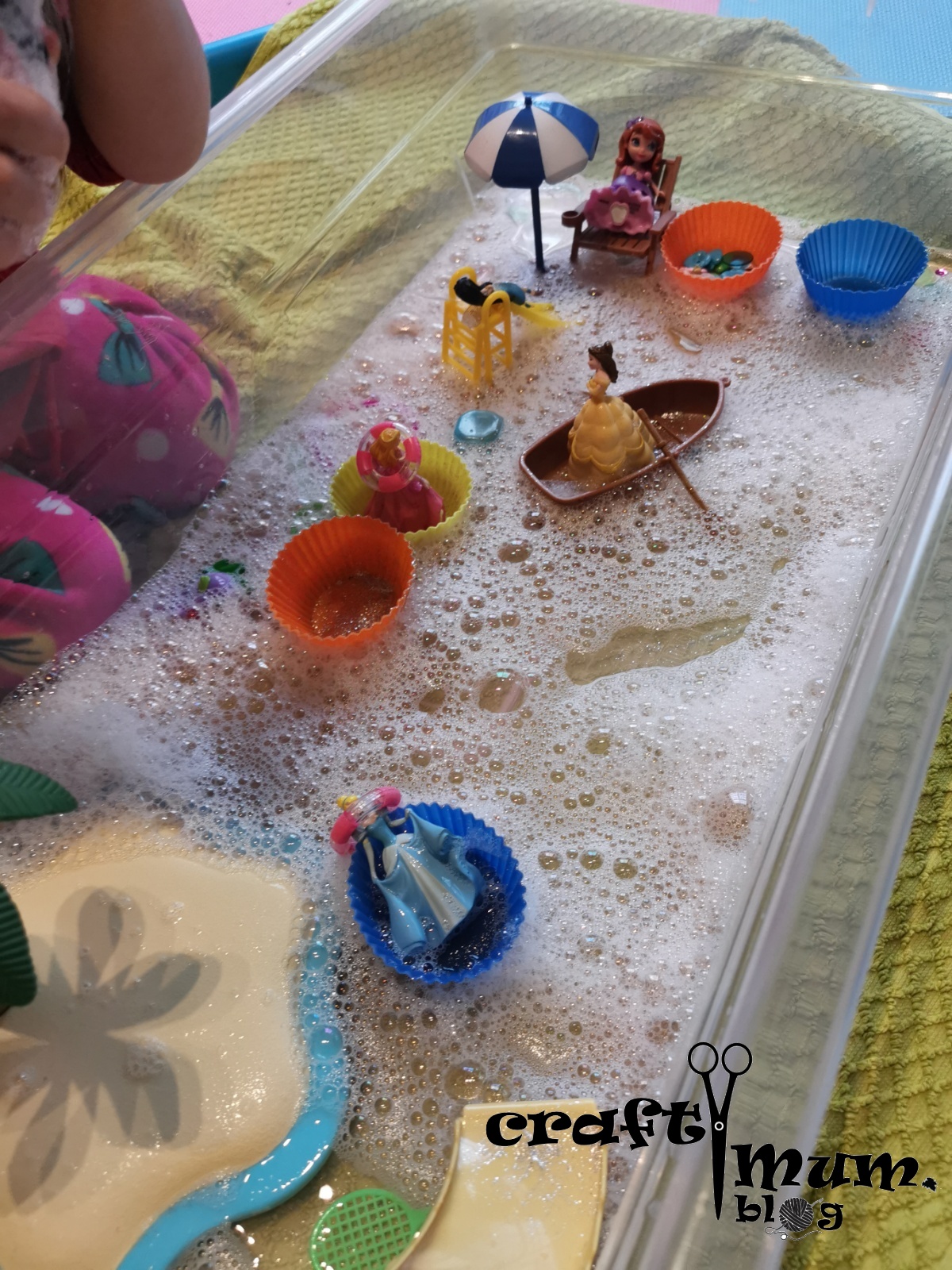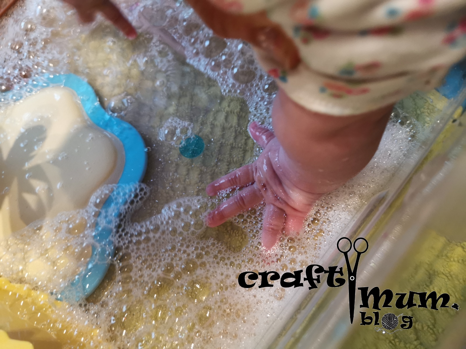 - Water with bubbles (I used a Lush bubble bar with an amazing smell and colour for added sensory experience);