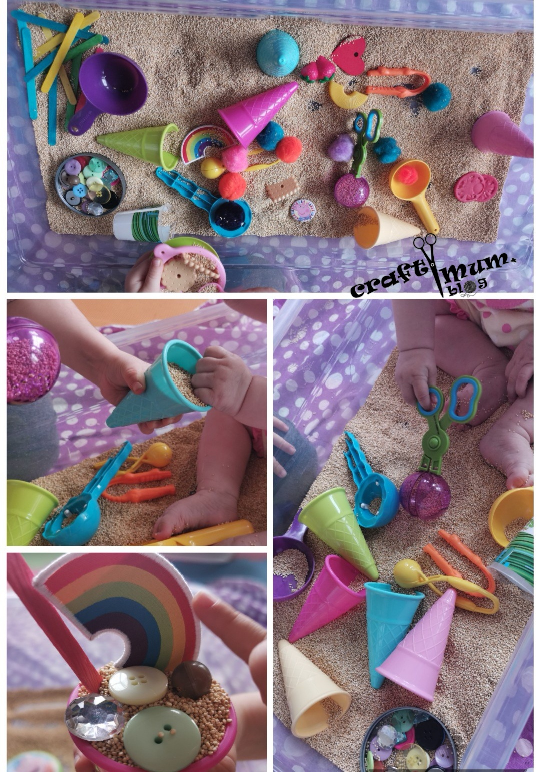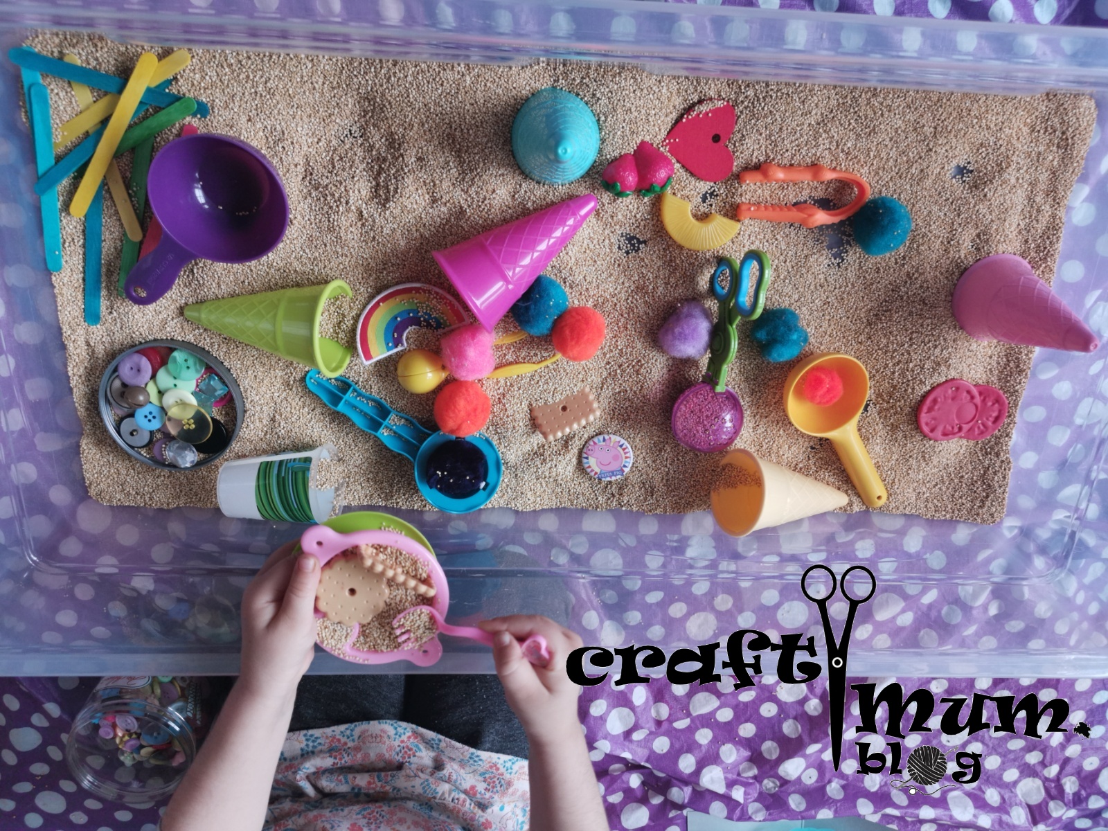 Great bin for scooping, fine motor skills, pretend play and learning the likes of your little ones.