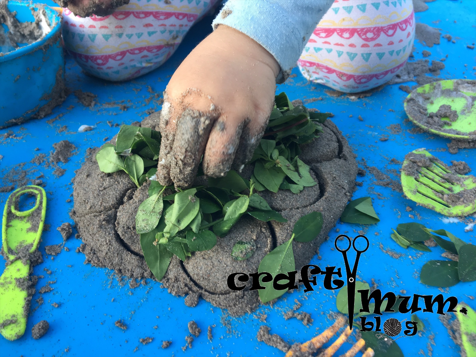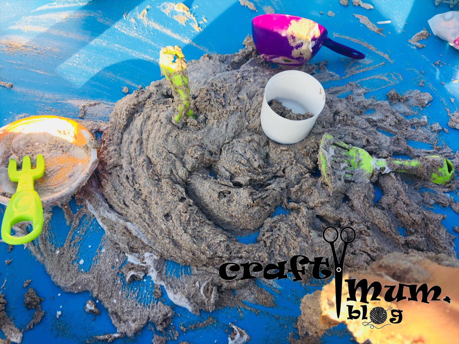Gather a bucket of sand next time you’re going to the seaside. Mix it with shaving cream. With a set of pots and spoons this becomes great play material.