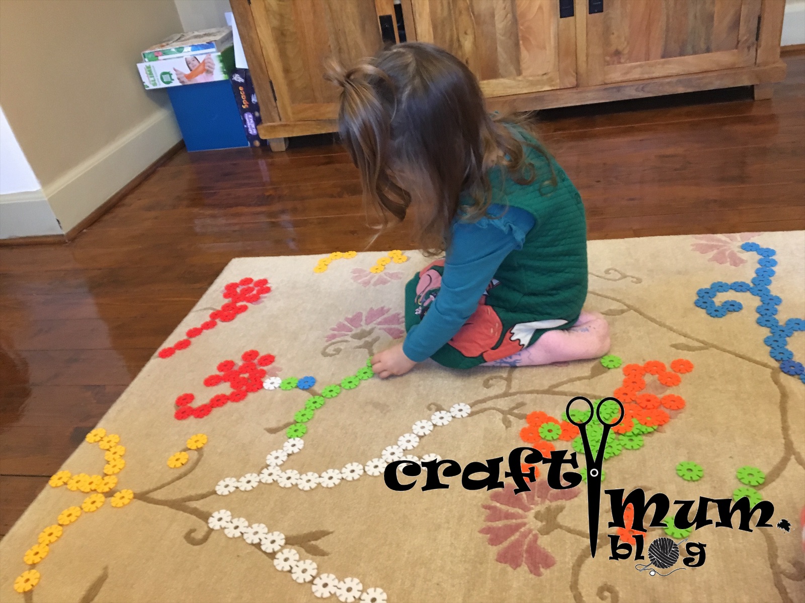 An easy time killer play with some sort of therapeutical effect for our little one. Tracing various patterns with small colourful toys, buttons, legos or other similar things you have in the house. We used snowflake building pieces.