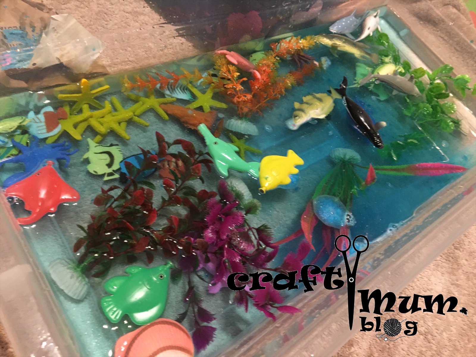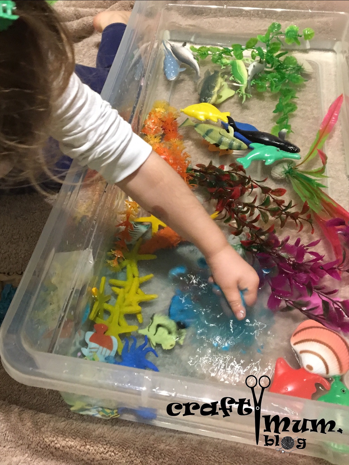 Here’s a water bases sensory bin: under the ocean soup